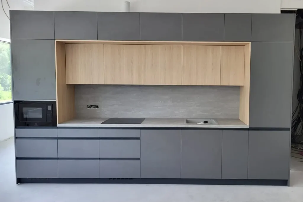 Moderný dizajn kuchynskej linky, jednoduchosť, dokonalosť