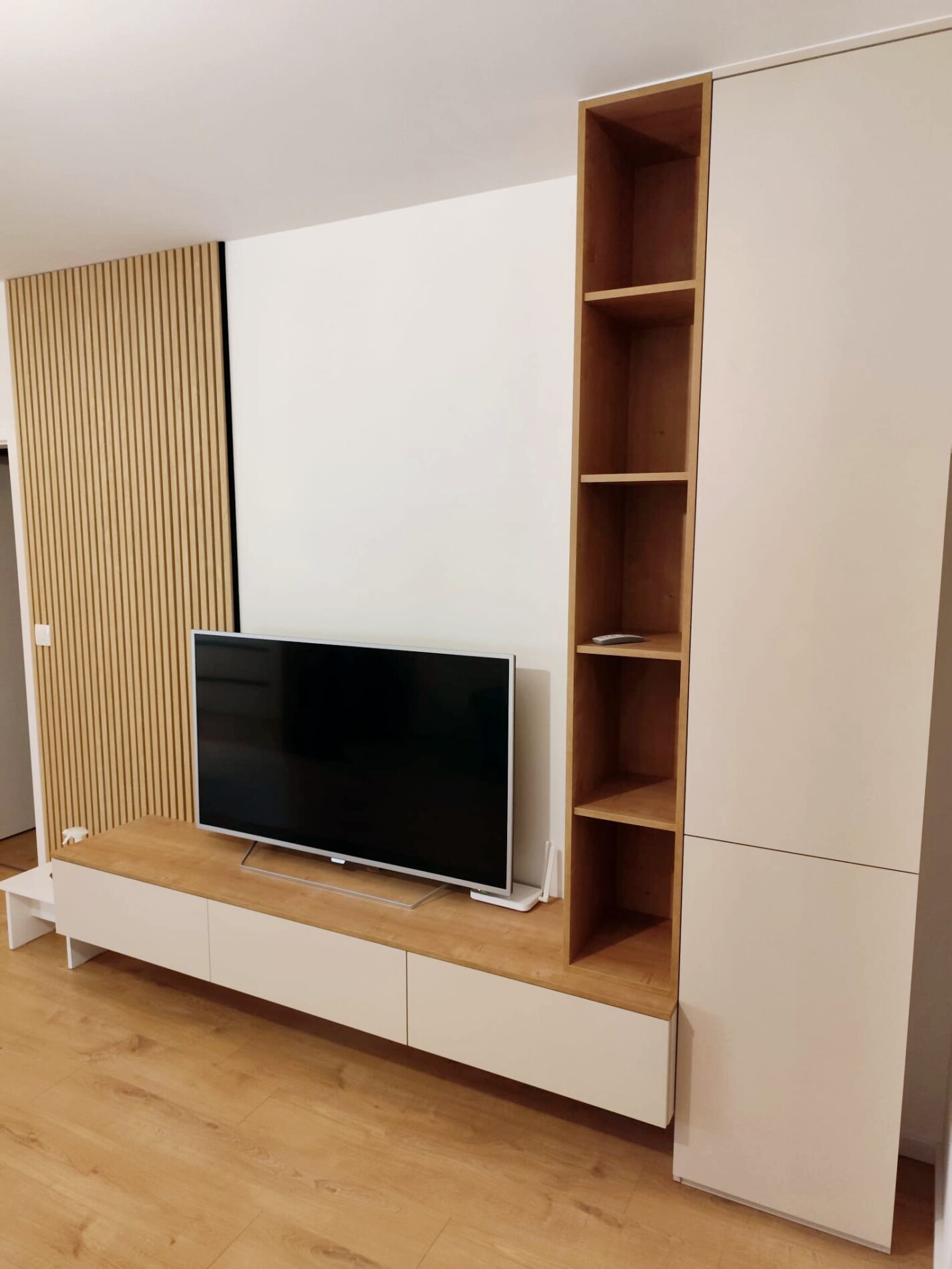 Naša výroba využíva CNC technológie a kvalitné materiály, ktoré umožňujú realizovať aj náročné a atypické riešenia – od vstavaných knižníc cez TV steny až po dizajnové úložné systémy. Každý detail je premyslený tak, aby slúžil dlhé roky.